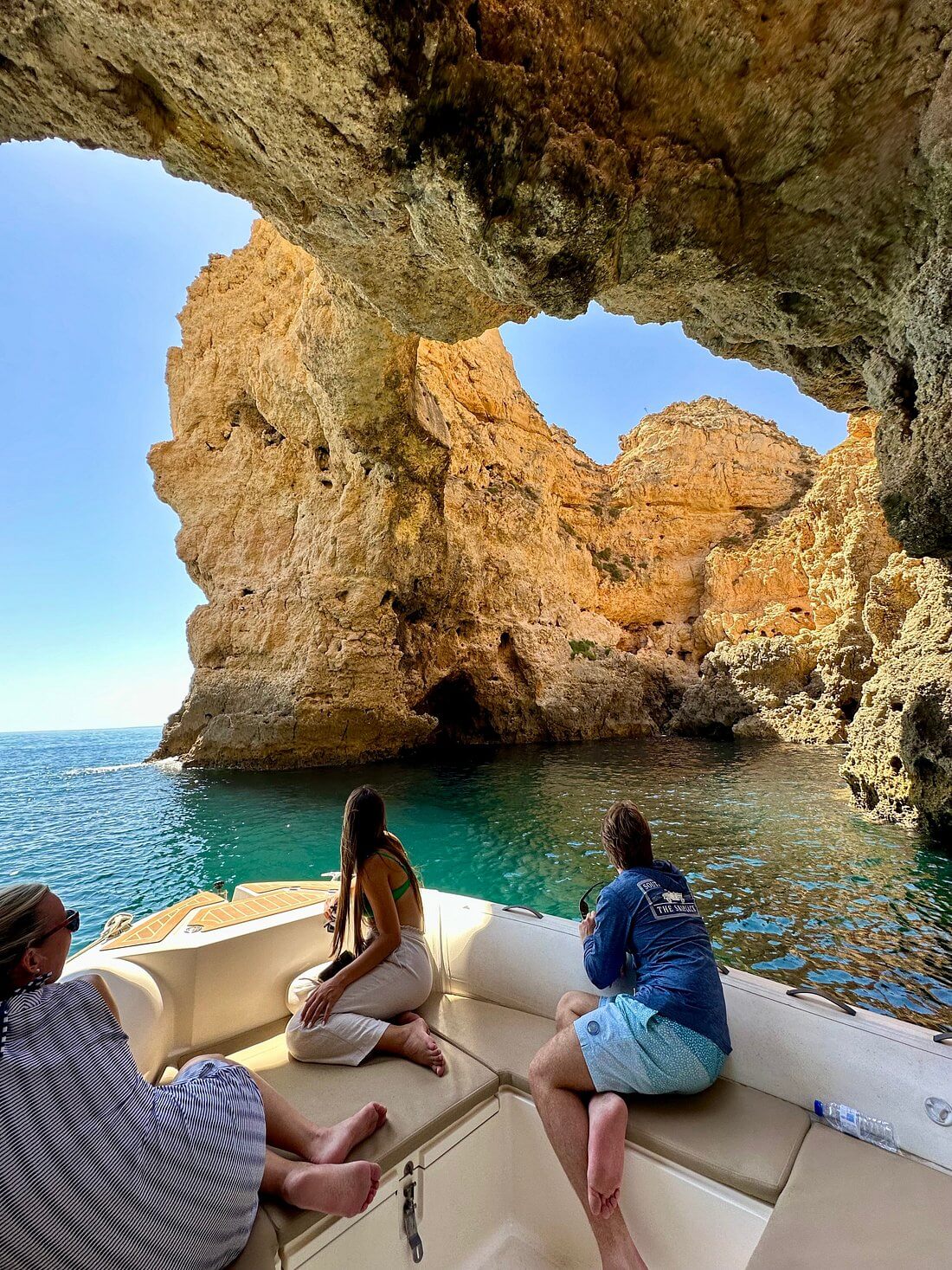 Mein Freund aus Großbritannien war zu Besuch und er ist ein begeisterter Segler, also wollte ich mit ihm einen Bootsausflug machen. Viele Aktivitäten sind im November geschlossen, aber Blue Fleet bietet noch Ausflüge an, also fuhren wir nach Lagos. Dieses Unternehmen ist sehr gut organisiert! Die Buchung war einfach, die Preise sind erstaunlich und die Mitarbeiter sind sehr freundlich! Der Empfang im Büro am Bahnhof von Lagos (einfaches Parken) war unkompliziert, und die junge Dame dort erklärte uns, dass wir aufgrund des rauen Seegangs möglicherweise nicht in die Höhlen einfahren könnten, aber es sei möglich, dass sich die Lage bessert. Unsere Crew kam pünktlich, Bruno und Beatrice begleiteten uns zum Hafen und legten uns Schwimmwesten an. Dann gingen wir an Bord eines sehr schicken Schnellbootes, das nagelneu aussah! Wir hatten Glück, dass nur wir und ein weiterer Passagier an Bord waren, so dass wir uns wie bei einem privaten Verleih fühlten! Auf dem Weg nach Benagil gab uns Beatrice einen ausgezeichneten Kommentar über die Gegend, während das Boot auf den Wellen auf und ab schwankte. Die Felsformationen sind sehr beeindruckend, vor allem, wenn man sie von einem kleinen Boot aus bei rauer See betrachtet. Als die Wellen in die Höhlen hinein- und wieder herausspülten, sah es nicht so aus, als würden wir hineingehen.