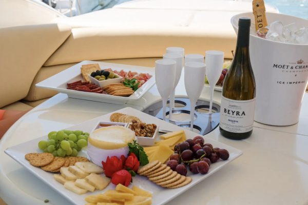 We’ve got some great snacks and drinks to keep you going, including cheese, meat, and fruit platters, as well as some refreshing beverages like 2 bottles of wine wine, 2  juices per person, and a welcome drink. You can choose when you want to set sail – we offer sunrise, morning, afternoon, or sunset cruises, or even a full day. We’ll be taking off from the Marina de Albufeira.