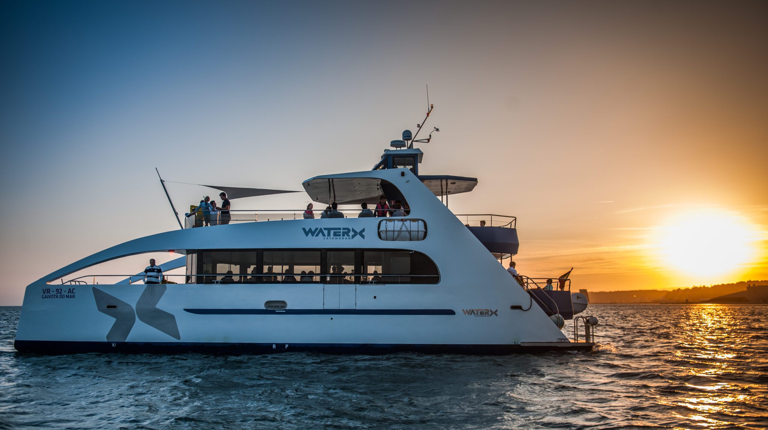 “Gaivota” es un fantástico yate-catamarán construido en Portugal específicamente para tours, eventos y fiestas. Este espectacular catamarán es adecuado para eventos de hasta 140 invitados. Es el escenario perfecto para que tu grupo disfrute de un momento increíble a bordo de un elegante barco en Lisboa. A bordo, encontrarás todas las comodidades que necesitas para una experiencia inolvidable. evento privado en el mar.