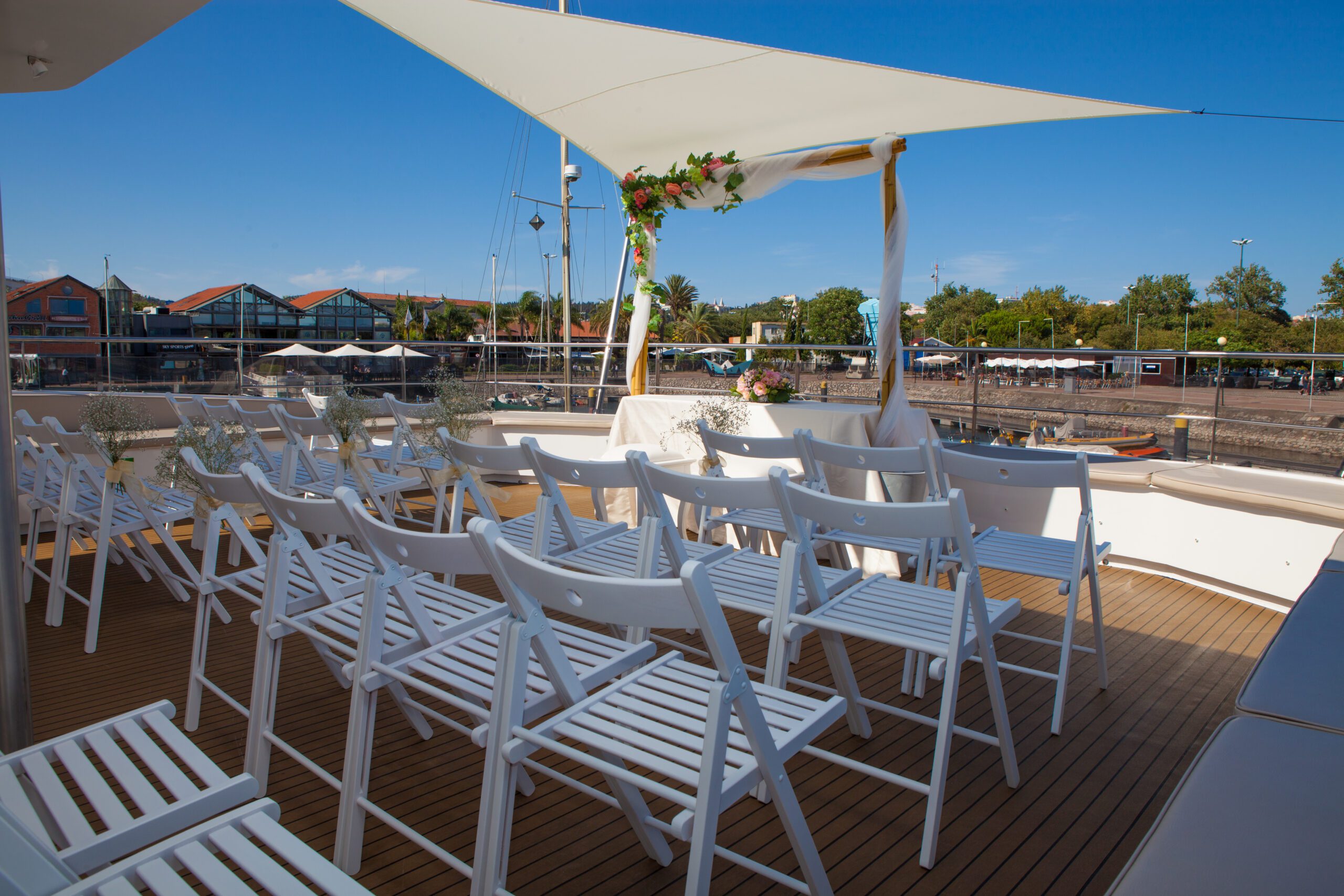 Gracias a sus diversos espacios interiores y exteriores, es una embarcación que se adapta fácilmente a todo tipo de eventos y durante todo el año. ¡Puede acoger perfectamente una fiesta al atardecer en el río Tajo o incluso una boda!
