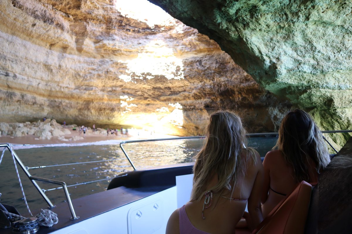¿Está de vacaciones en Albufeira ¿y te gustaría visitar la cueva de Benagil? ¡Este tour en barco por Benagil en Albufeira es una opción maravillosa para hacerlo! ¡Relájate al sol, disfruta de una bebida fría y déjate asombrar por la belleza de las impresionantes formaciones rocosas de la costa del Algarve!