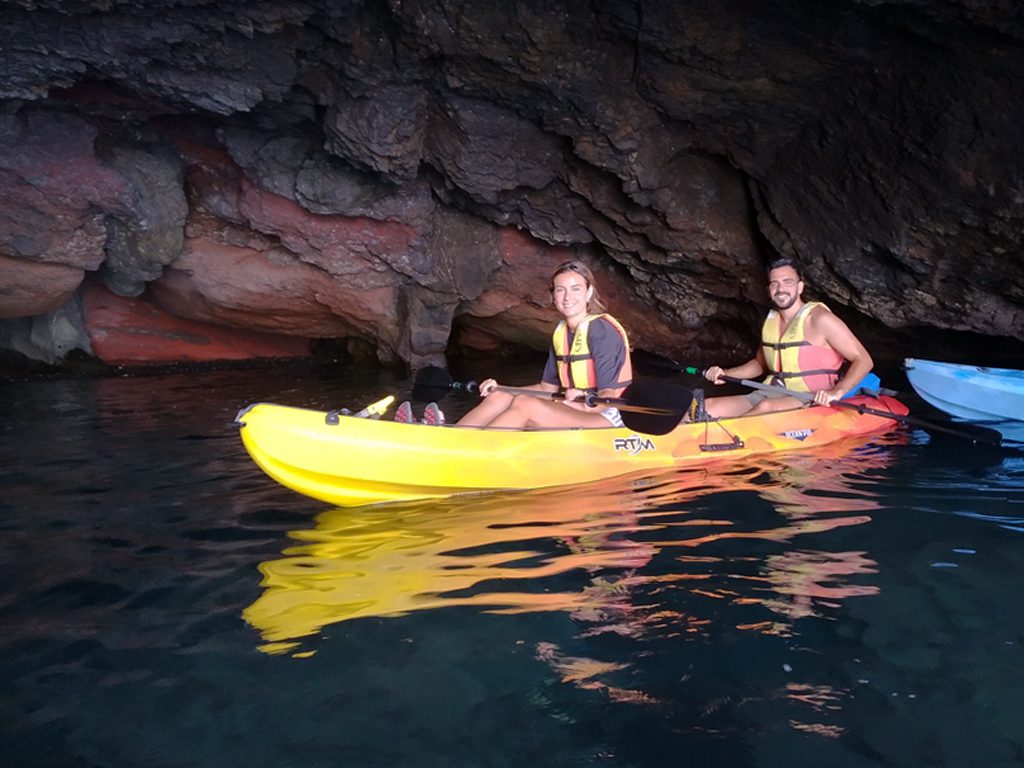 El punto de encuentro es en Playa Blanca. Allí, nuestros amigables guías prepararán todo el material y darán una breve explicación sobre seguridad y lo que se avistará durante el recorrido. No te preocupes si nunca has remado en kayak, porque Nuestros instructores te enseñarán todo lo que necesitas saber. Sorpréndete con las impresionantes cuevas y acantilados desde tu kayak. Dependiendo de las mareas, ¡incluso intentaremos entrar en una de las cuevas!