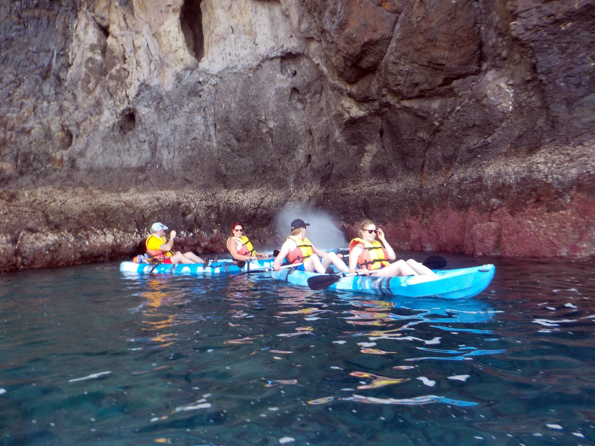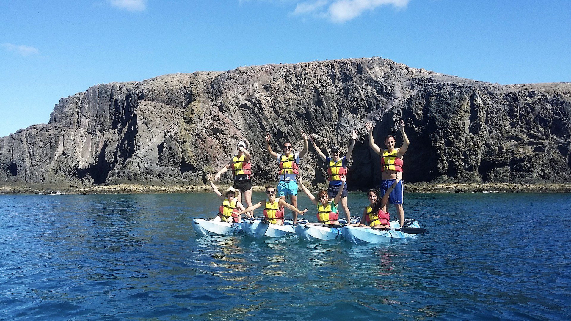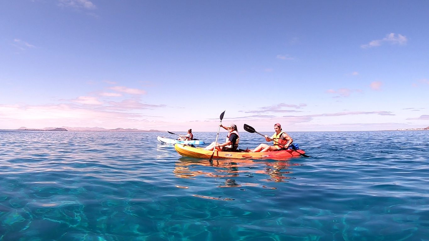 El tour en kayak en Lanzarote toma 3 horas en total y se puede hacer todo el año (dependiendo de las condiciones del océano y del clima). ¿Necesitas más persuasión? ¡Ven en kayak y a bucear con tus amigos y/o familiares!