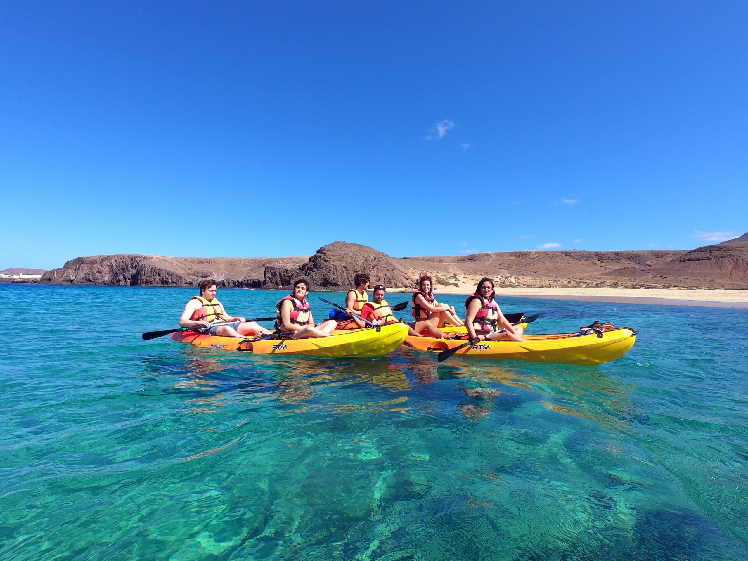 ¿Puedes imaginarte remando en la aguas cristalinas ¿por la playa de Papagayo? Los acantilados son absolutamente impresionantes, y por eso esta excursión en kayak por Lanzarote es algo que no te puedes perder durante tus vacaciones en esta hermosa isla. La reserva natural de Los Ajaches sirve de escenario para una inolvidable excursión en kayak en Lanzarote. ¿Vienes con nosotros?
