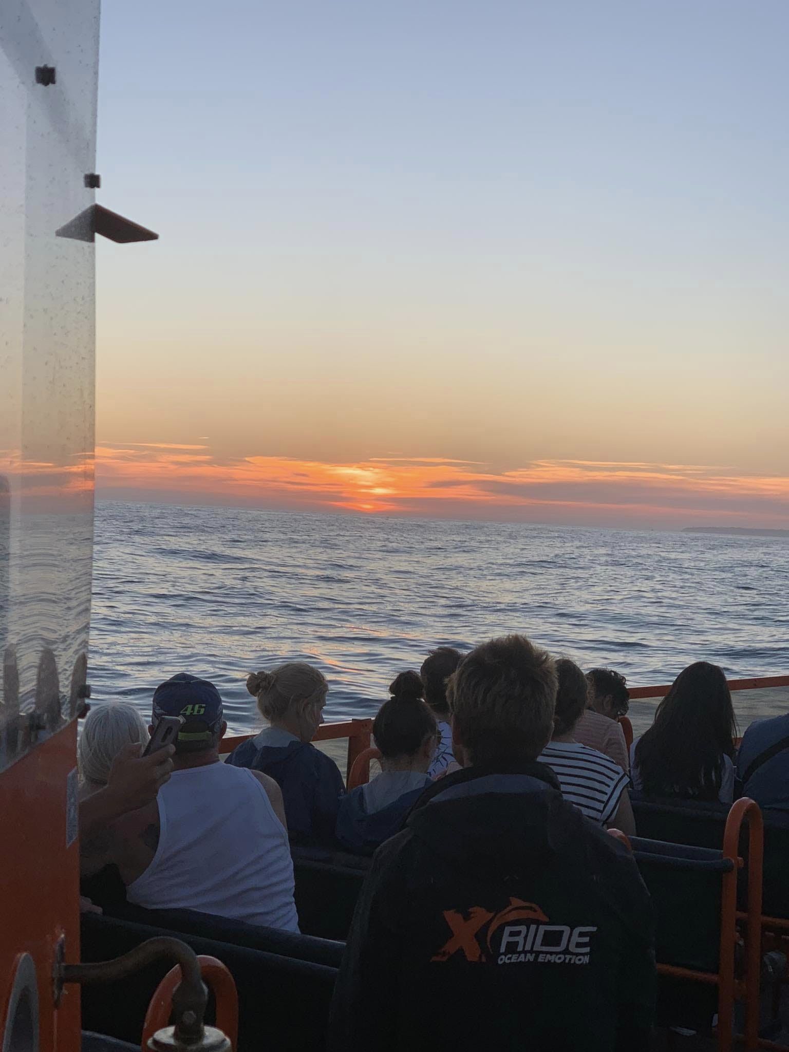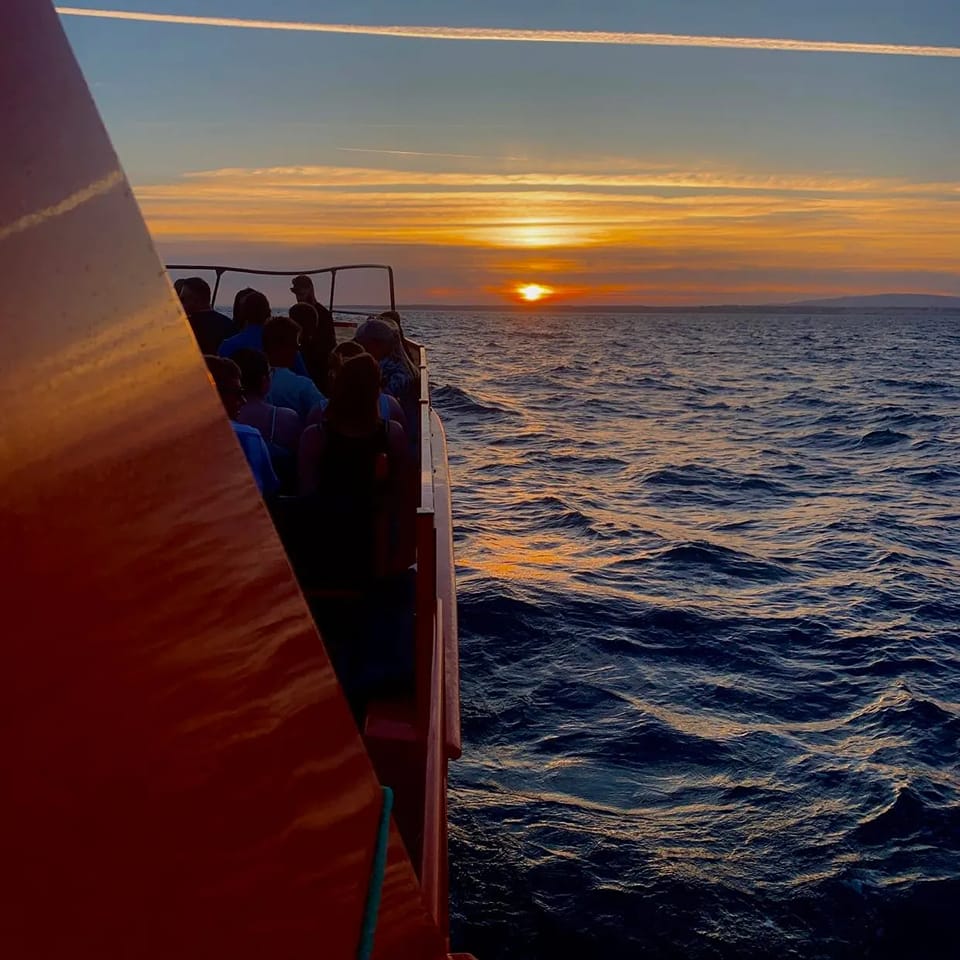 As the day draws to a close, the serene waters of the Algarve coastline beckon you for an enchanting journey. The boat, which can comfortably accommodate up to 40 people, starts from the Marina de Albufeira. As you embark on a 1.5-hour leisurely boat trip along the picturesque coast, you’ll be greeted by the glorious sight of the sun slowly dipping below the horizon, casting a warm, golden glow across the sky.