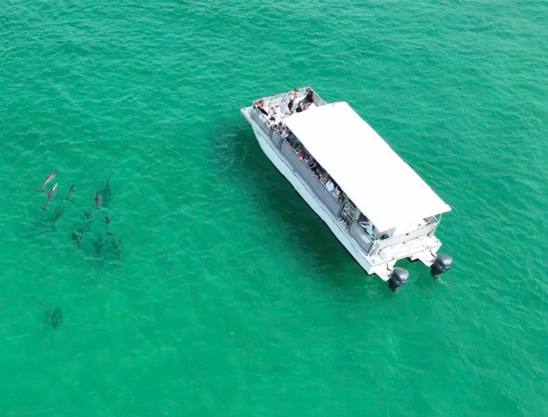 Join us for an unforgettable boat tour exploring the stunning Emerald Green waters of the Gulf of Mexico and the Choctawhatchee Bay in Destin, Florida. Our Coast Guard certified boat offers the perfect vantage point to witness playful dolphins and breathtaking sunsets. We strongly recommend booking in advance to secure your spot on the best dolphin tour in Destin!