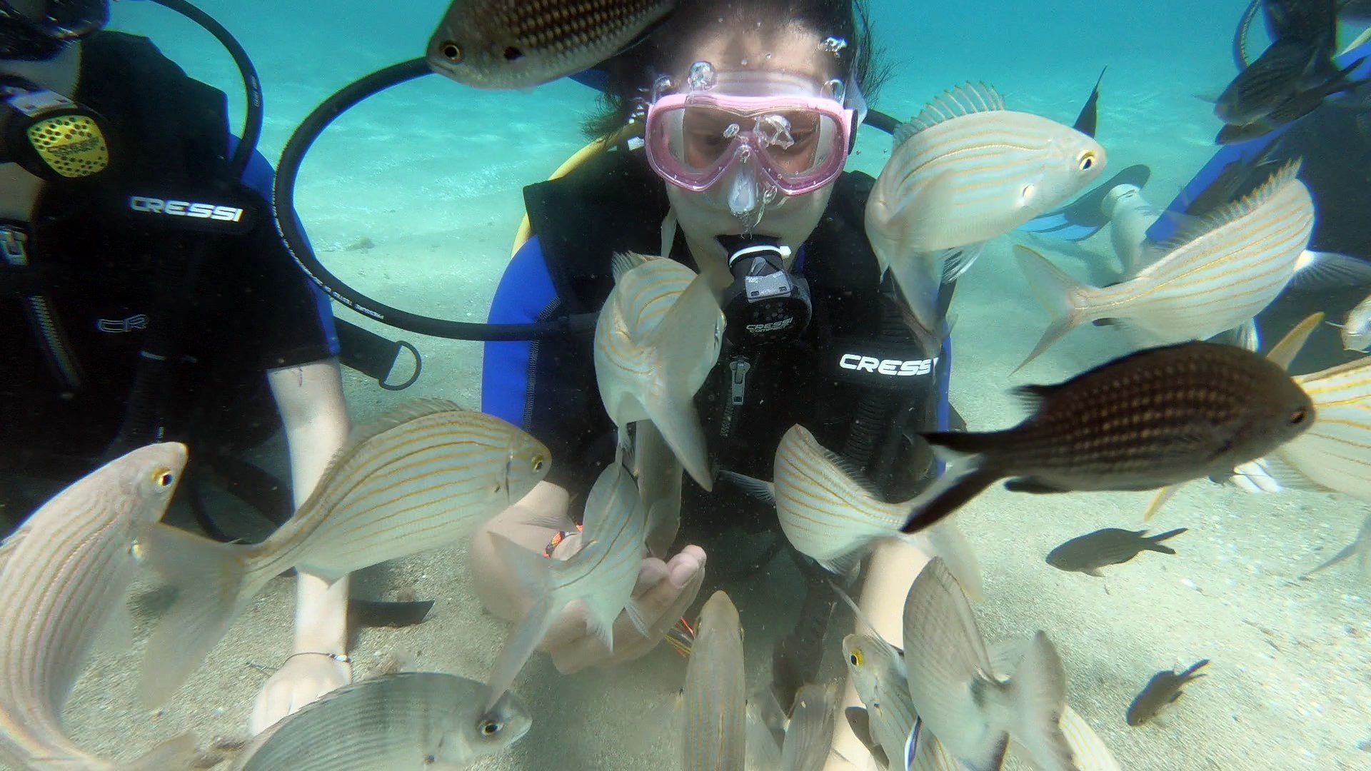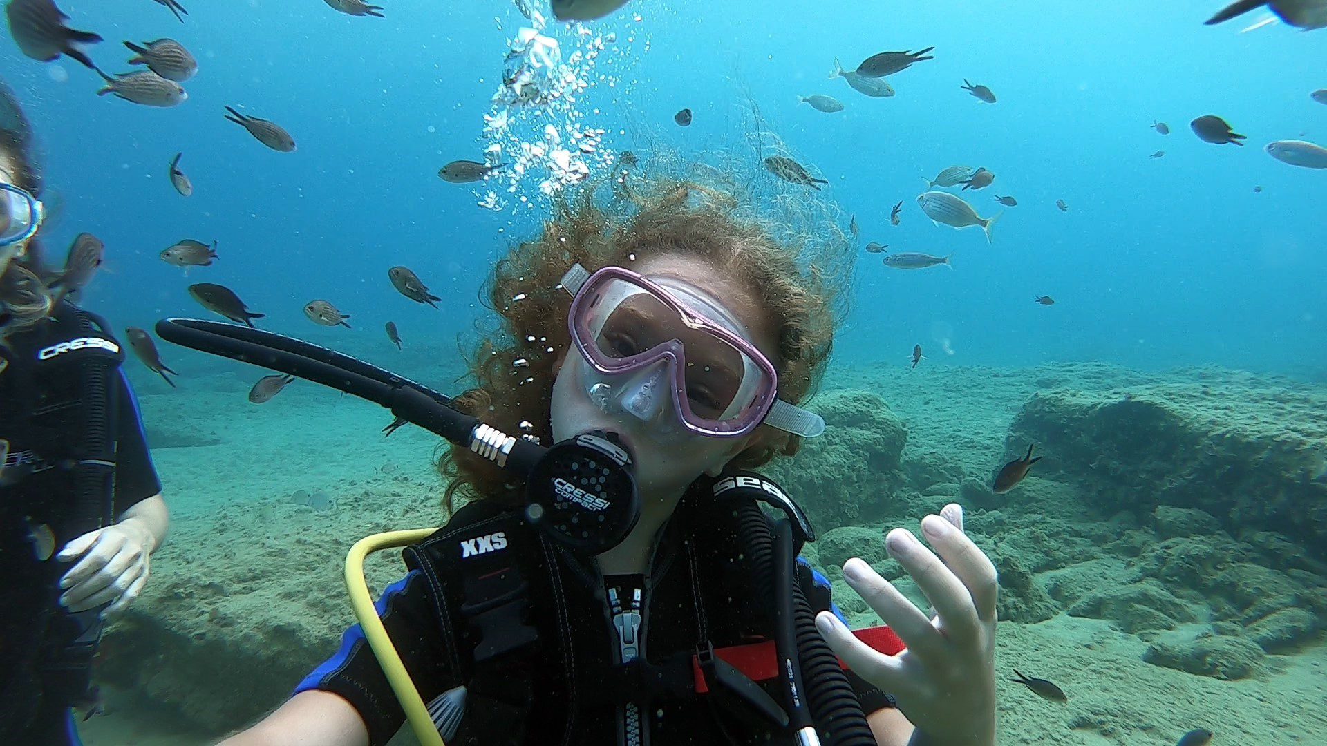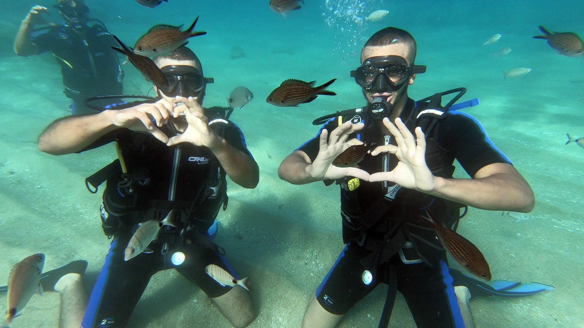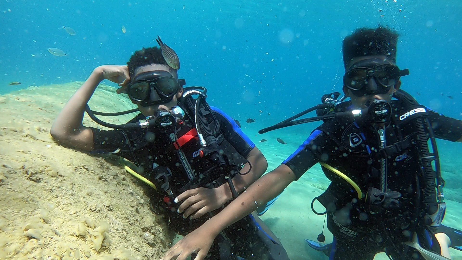 You will then spend 1 more hour in the sea, where you will practice the simple techniques you previously learned, and our instructors will guide you to the top experience of your life. You will breathe and move freely underwater while thousands of fish swim around you. You will play games underwater and explore our house reef. During your first dive, you are allowed to reach the depth of 6 meters, but we will take you only where you feel comfortable and safe.