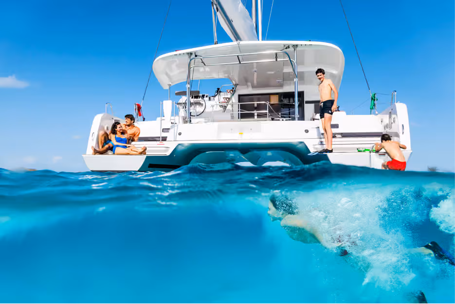 The journey begins at the designated meeting point in Mykonos (typically Agios Ioannis or Ornos). Guests step aboard a modern, high-performance catamaran specifically designed for stability and space. As the boat sets sail, passengers can relax on the decks or the comfortable nets at the bow.