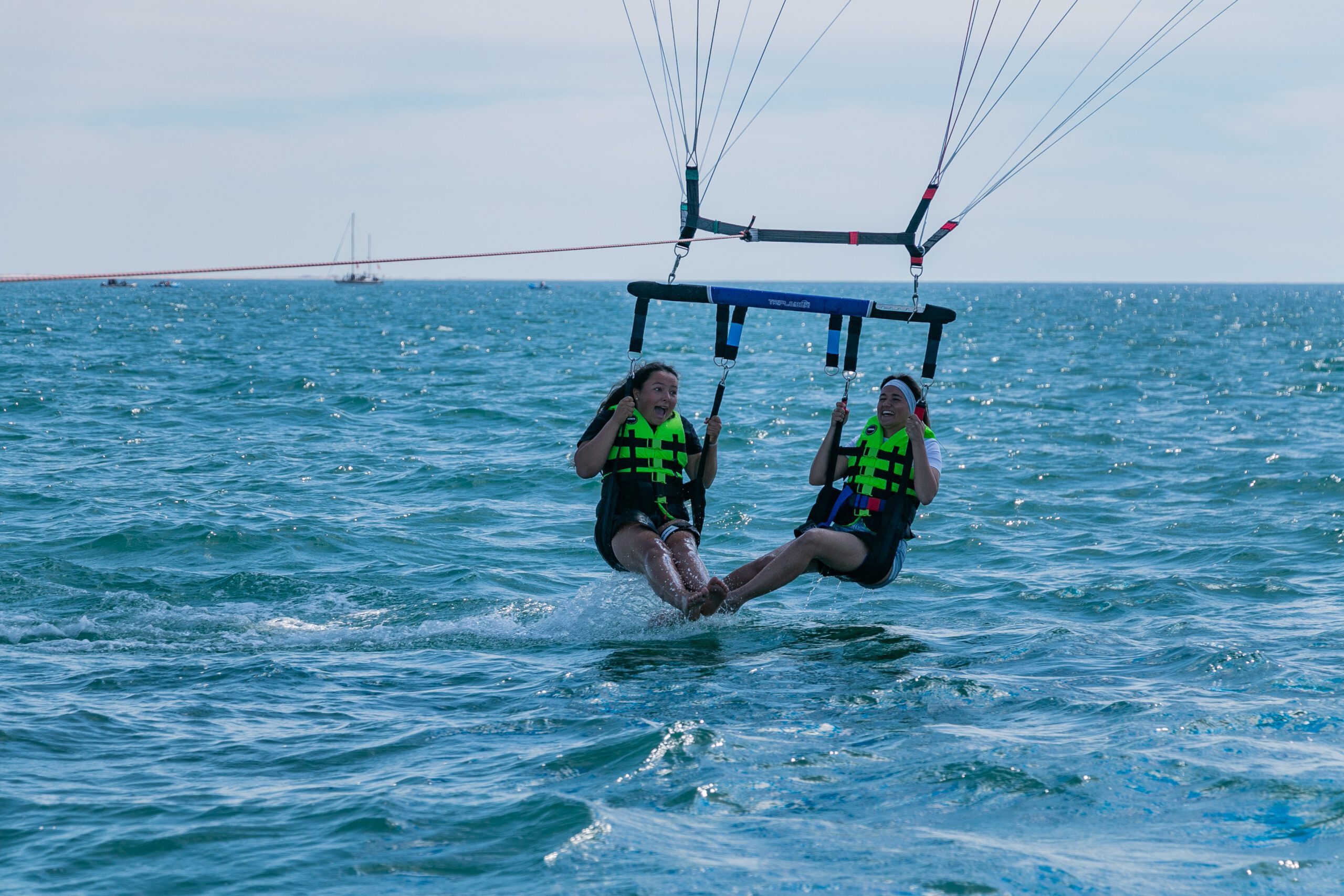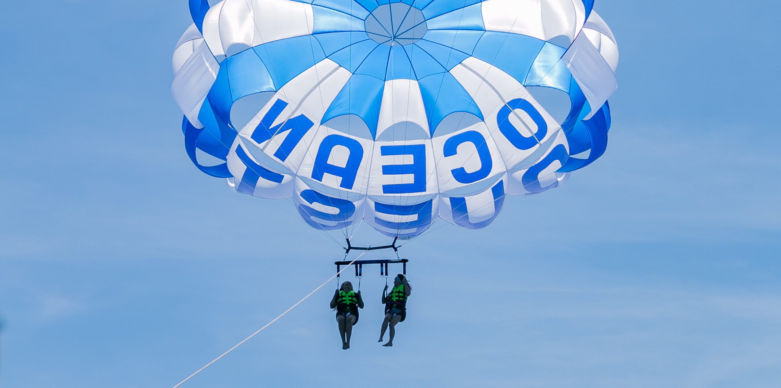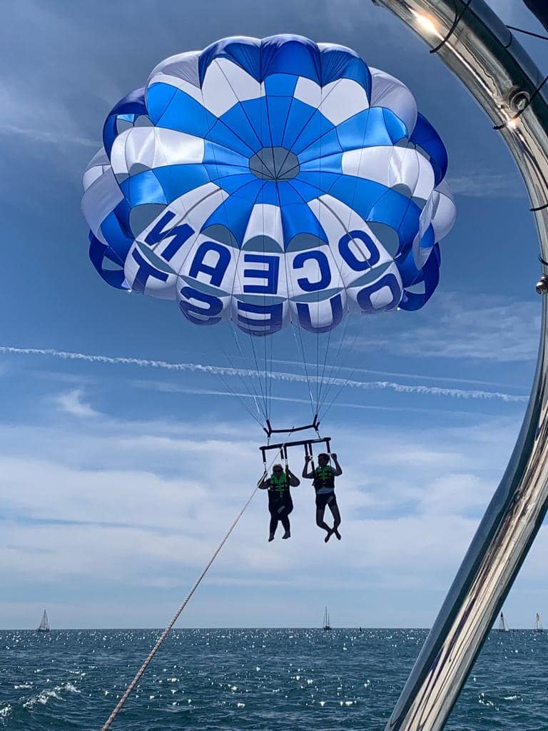 Our parasailing boat, “Ocean Vision,” offers stunning views that you won’t forget. And don’t worry about capturing the moment – we’ve got you covered with our photo service and GoPro rental. Whether you’re flying solo, with a partner, or in a group of three, we guarantee a one-of-a-kind adventure.