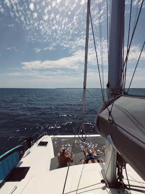 The catamaran has space for up to 12 guests and our crew. The catamaran departs from the Marina of Portimão. You can book it for 3 or 6 hours.
