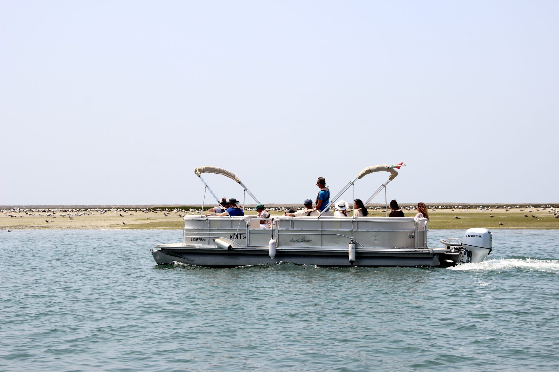 The friendly and experienced crew will welcome you on board of the comfortable boat at the Doca de Recreio in Faro. Come on board and take a seat in the sun or shade, and get ready for a beautiful 2-hour boat trip in Ria Formosa. Did you know that the protected area of Ria Formosa is one of the 7 Natural Wonders of Portugal? It is also the most important wetland for aquatic birds in Portugal, and home to many special species you can’t find anywhere else around.