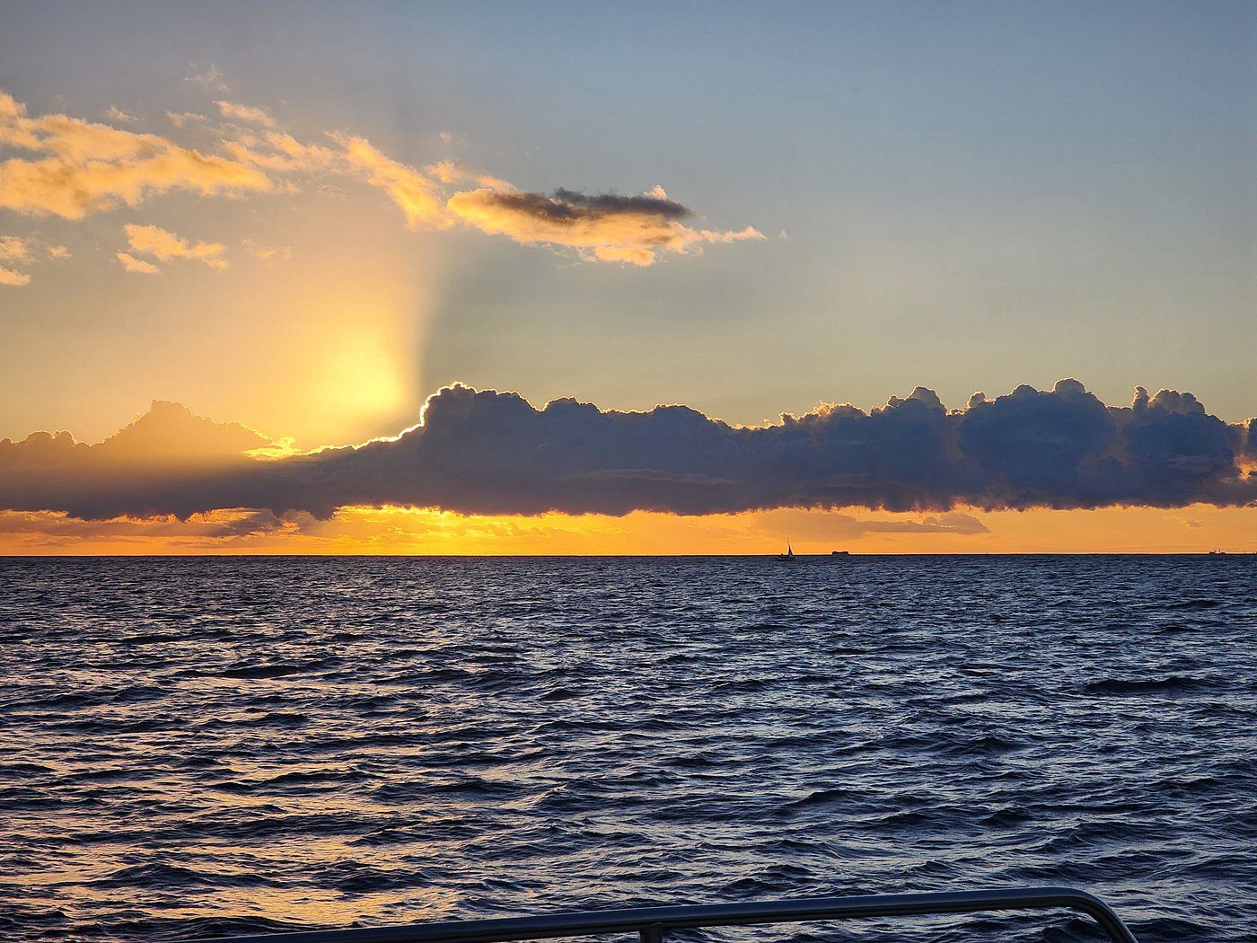 As you make your way back, you’ll witness the breathtaking moment when the sun dips below the horizon. You might even get lucky and catch a glimpse of the green flash. To make your experience even more memorable, an individualized light appetizer is included, along with unlimited non-alcoholic beverages and two free bar drink tickets per adult.