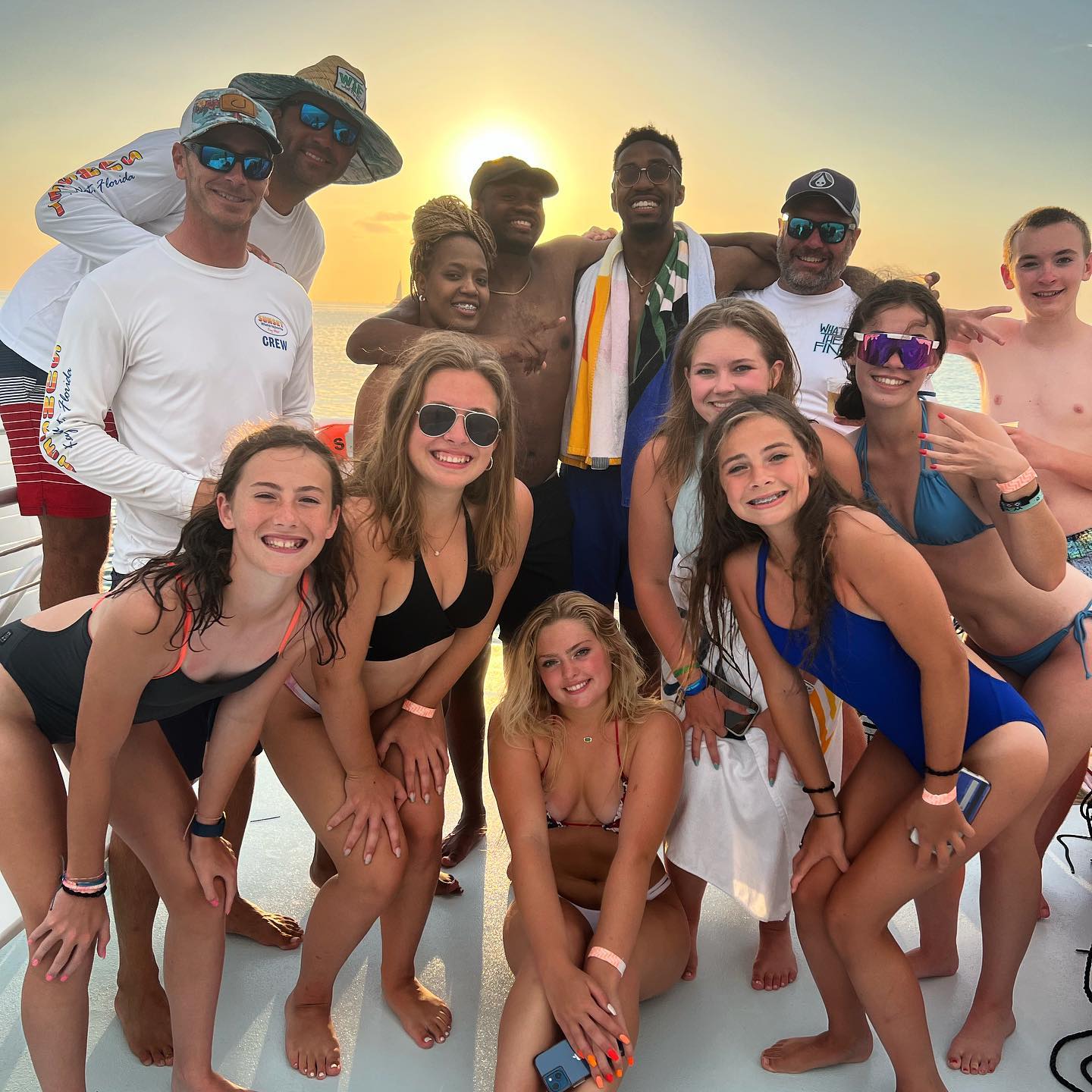 Enjoy stunning sunset views and a delicious tropical cuisine buffet provided by our crew. As our local steel drum musician fills the air with tropical rhythms, grab a tropical cocktail and boogie into the sunset. This trip includes an unlimited open bar. The open bar offers unlimited well-mixed drinks, draft beer, margaritas, wine, champagne, rum runners, and soft drinks.