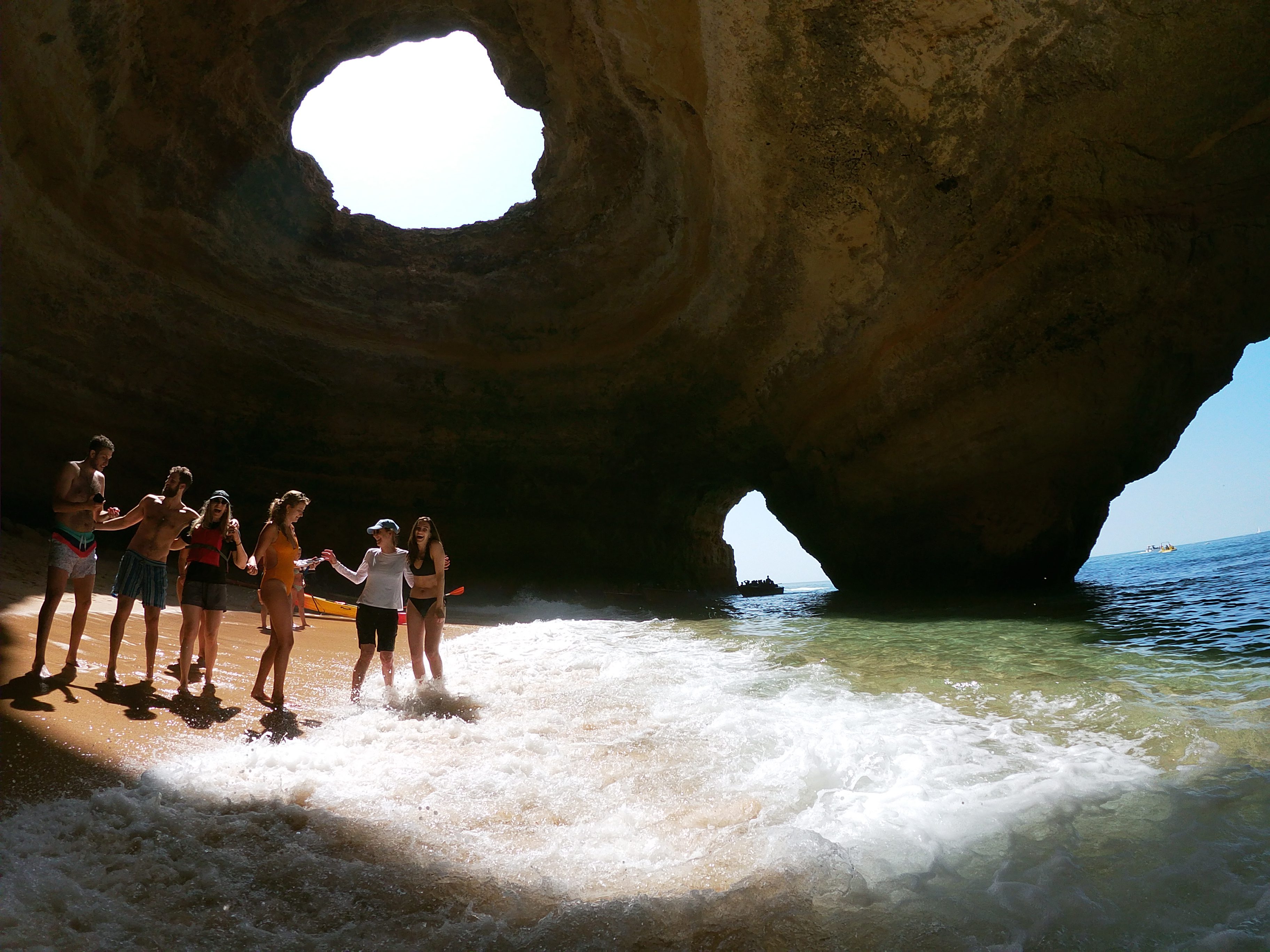 The SUP tour in Benagil takes about 3 hours. This may sound long, but like that we can take our time and take a rest on one of the beaches or caves. Did you know that, by law, boats are not permitted to disembark passengers in the Benagil cave, so SUP is a unique way to be able to stand on the sand in the cave? Join us!