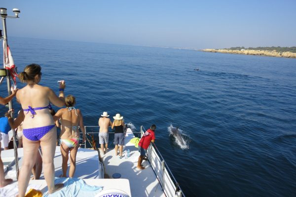 Come and experience a 2-uur boat tour starting from Marina de Vilamoura that offers you the opportunity to witness our charming dolphins frolicking along the breathtaking Algarve coastline and explore the stunning caves. With an impressive 89% chance of encountering families of dolphins, you’re in for a memorable treat!