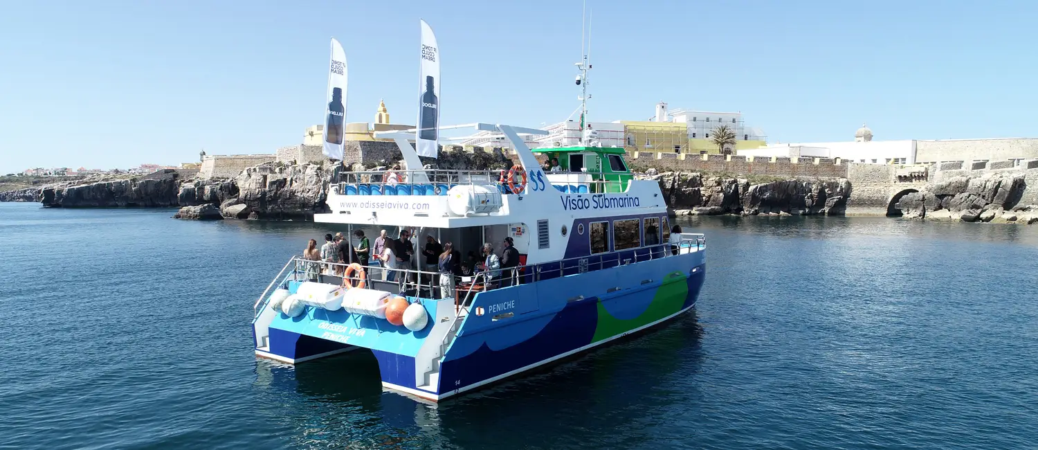 For a complete and unforgettable visit to the Berlengas archipelago, pair a fast and comfortable trip on our catamaran with a magical glass-bottom boat tour through the caves.