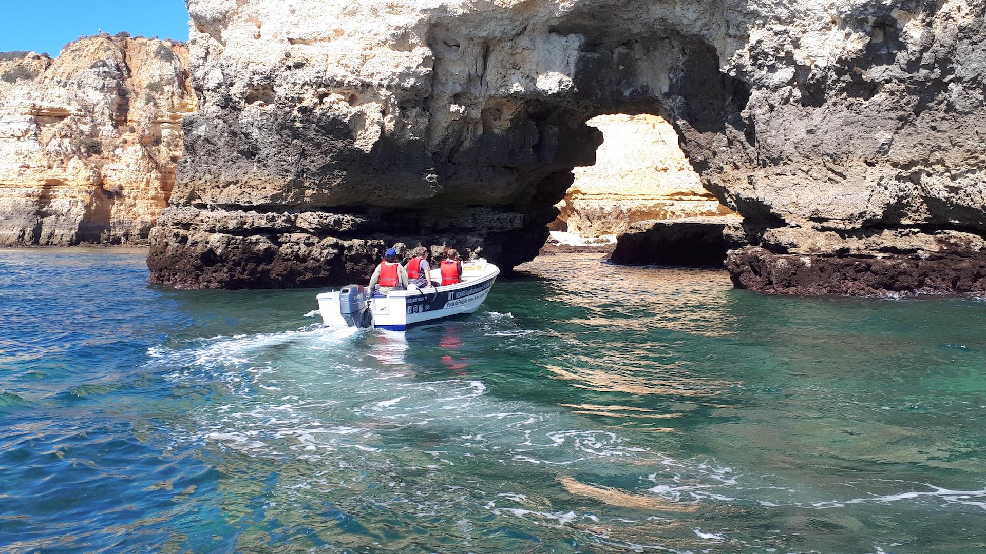 A nossa equipa local e experiente recebê-lo-á no Marina de Lagos às 19h00 durante o verão. Aqui embarcará a bordo do nosso barco gruta pequeno e seguro, O veículo perfeito para visitar de facto as impressionantes formações rochosas.